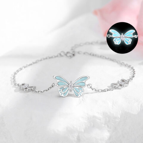 Delicate and luminous, this enchanting necklace features a butterfly-shaped pendant crafted from platinum-plated S925 sterling silver, set with a premium light blue glowing 5A zirconia stone. The high-grade zirconia sparkles in the light and softly glows in the dark, creating a magical effect that enhances its graceful design. Suspended from a sleek sterling silver chain, this piece combines elegance and whimsy—perfect for those who love nature-inspired jewelry with a touch of fantasy. Ideal for gifting or adding a dreamy accent to your everyday style.