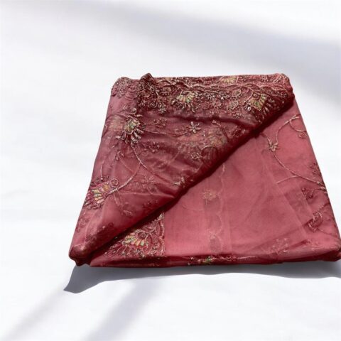 Add timeless elegance to your ethnic wardrobe with this stunning dusty rose pink Net Cotta Embroidered Saree. Crafted from soft and lightweight net cotta fabric, this saree features exquisite floral and vine embroidery enhanced with delicate beads work that adds a subtle shimmer and rich appeal.