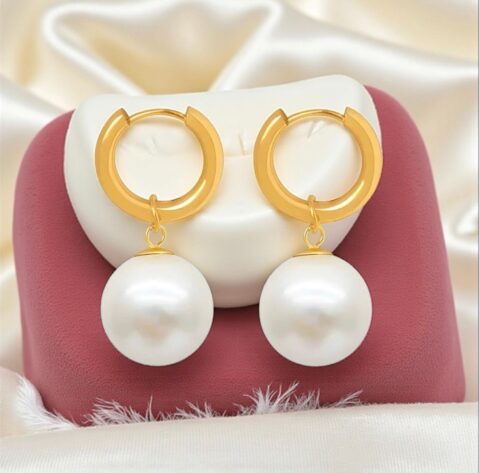 Graceful and sophisticated, these 18K gold-plated congo earrings combine the timeless elegance of pearl with modern design. The lustrous pearl imitation dangles delicately, catching the light with every movement, while the sturdy stainless steel ensures durability and comfort. Lightweight, hypoallergenic, and long-lasting, they are perfect for adding a touch of refined charm to both everyday outfits and special occasions. A chic statement piece that embodies elegance and femininity.