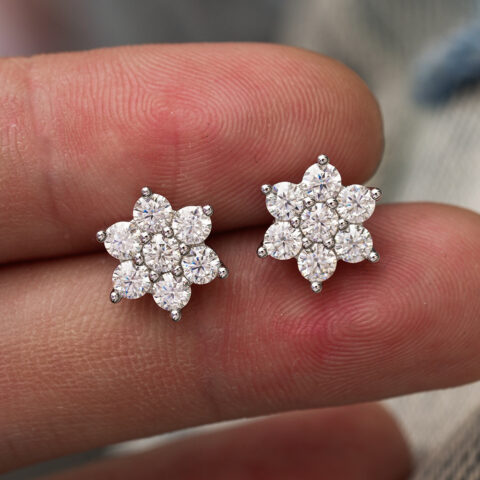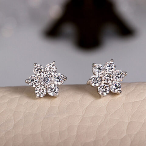 • Flower-shaped earrings adorned with sparkling zircon stones