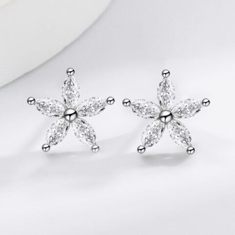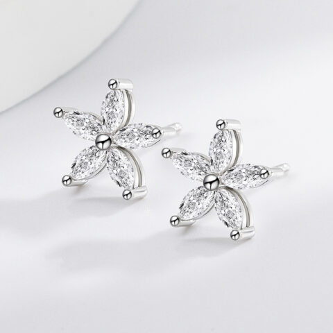 Elegant and feminine, these flower-shaped earrings are crafted from high-quality white copper and finished with a sleek platinum plating for a brilliant, long-lasting shine. Each delicate petal is adorned with 5A zircon stones, known for their exceptional sparkle and clarity, creating a look that’s both refined and radiant. With S925 silver needles, these earrings offer a secure and comfortable fit, making them ideal for sensitive ears. Perfect for adding a graceful touch to everyday outfits or enhancing your look for special occasions.