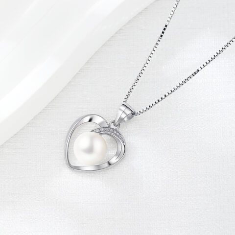 Romantic and sophisticated, this stunning necklace features a heart-shaped pendant crafted from platinum-plated S925 sterling silver, beautifully accented with brilliant 5A zirconia stones and a lustrous pearl at its center. The high-grade zirconia stones provide exceptional sparkle, while the pearl adds a classic, elegant touch. Suspended from a sleek platinum-plated sterling silver chain, this piece is the perfect blend of modern shine and timeless charm. Ideal for meaningful gifts, special occasions, or simply elevating your everyday style with a touch of grace and romance.
