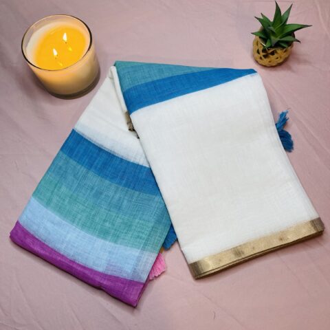 Elegant multi colour stripes with contrast pallu