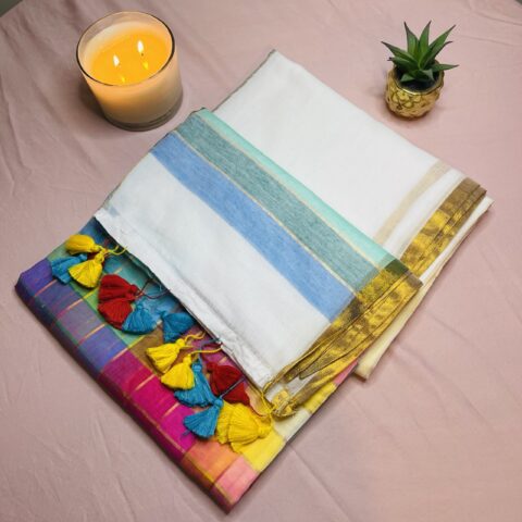 Pallu: Decorative tassels with elegant gold border