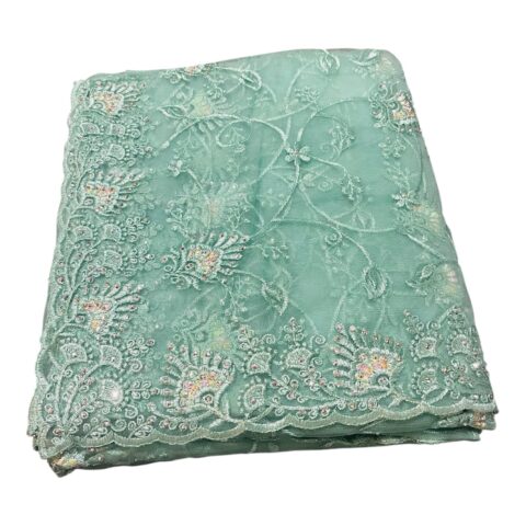 Elegant Sage Green Lightweight Net Saree with Floral Embroidery & Bead Work