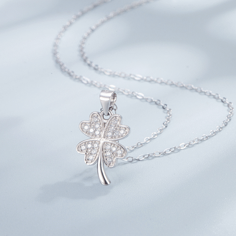 This elegant necklace is crafted from high-quality S925 sterling silver and features a delicate clover-shaped pendant, symbolizing luck and harmony. The pendant is adorned with brilliant 5A zirconia stones, chosen for their exceptional clarity and sparkle. Finished with a platinum plating, the piece offers enhanced shine and durability. Suspended on a sleek silver chain, this necklace is perfect for adding a touch of timeless beauty to any outfit.