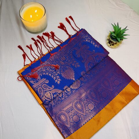 This soft silk saree features classic woven zari designs that add a timeless ethnic charm. The fabric offers a smooth feel with a graceful drape, making it ideal for celebrations, family functions, and cultural events. Finished with traditional borders and detailed pallu work, this saree blends elegance with everyday comfort. A matching blouse piece is included for a complete traditional look.